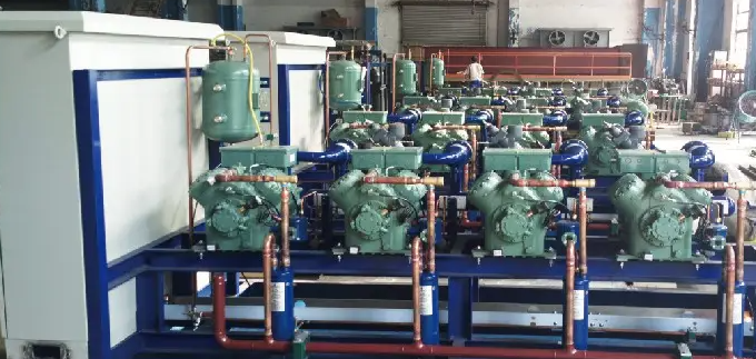 活塞并聯(lián)制冷機(jī)組的主機(jī)選用半封閉式往復(fù)式壓縮機(jī),活塞并聯(lián)機(jī)組制冷量區(qū)域大,PLC智能控制系統(tǒng),可以用于中、小型制冷系統(tǒng)中。主要應(yīng)用:商場超市、陳列柜和中小型冷庫